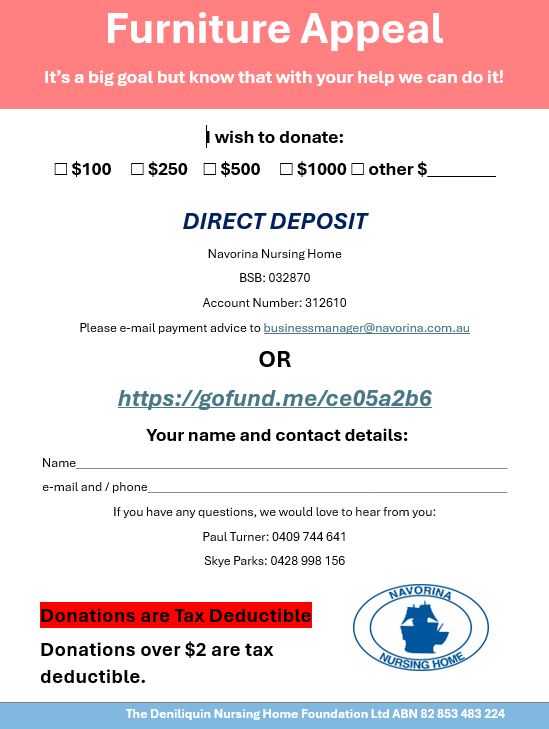 Navorina Nursing Home is located in Deniliquin and was opened in 1986.